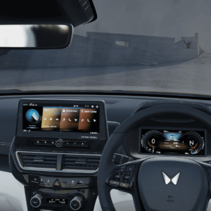 The Mahindra XUV 3XO presents a cabin that feels far more premium than what its segment traditionally offers. The dashboard design is clean yet contemporary, dominated by two wide digital screens that give the cockpit a modern, tech-centric character.